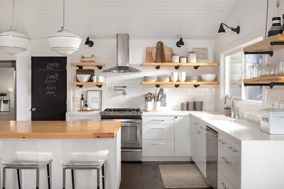 Для кухни будет лучше, если материал, из которого изготовлена полка, будет совпадать с материалом столешницы. Это придаст кухонному помещению свой определенный стиль и изящество.