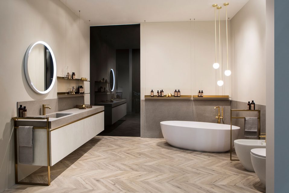 Если в ванной комнате решено сделать капитальный ремонт с заменой всей сантехники и водопроводной системы, после выравнивания всех поверхностей в комнате в соответствии с разработанным планом: