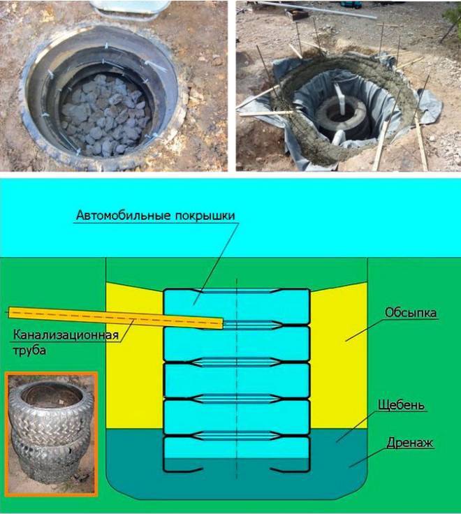 Если планируется построить простой, дешевый туалет для редкого использования, яму можно обустроить покрышками. Пошаговый алгоритм действий простой:
