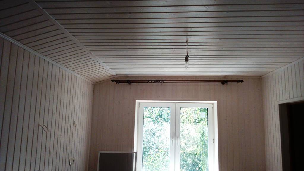 Теперь поговорим о том, как крепить вагонку к потолку. Выполняют это следующим образом: