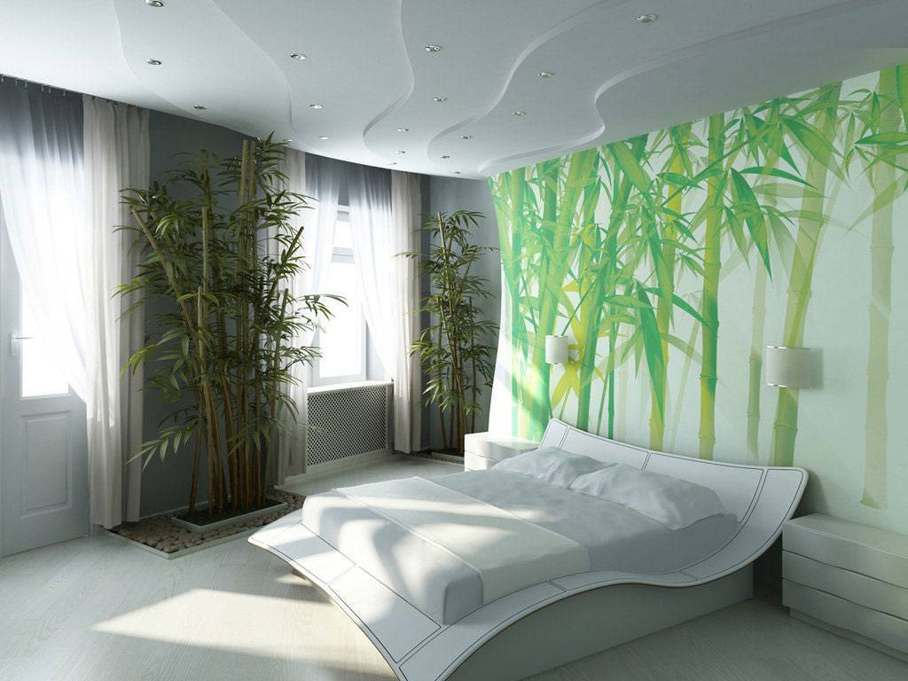 Экологичный интерьер, для которого характерна использование природных материалов. Возможность оформить стены с помощью натуральной глины, бамбука или дерева есть не всегда. Здесь на помощь придут фотообои с изображением природных элементов.