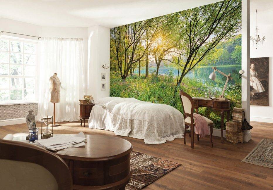 В зависимости от своих предпочтений выбирайте динамичность изображения и его сюжет. Южное расположение окон спальни предполагает выбор прохладной палитры – открытых водоемов, туманного леса, заброшенного парка. Окна на север будут хорошо сочетаться с яркими песочными пляжами, солнечными полянами и изображением летнего полудня.