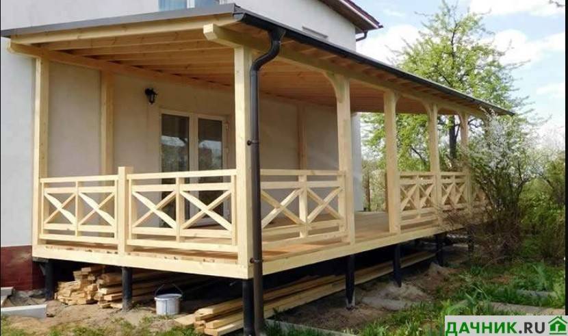 Пристроенная терраса – это отдельный вопрос. При наличии под ней фундамента достаточной прочности возводить веранду можно на террасе. При отсутствии основания придется заливать его заново.