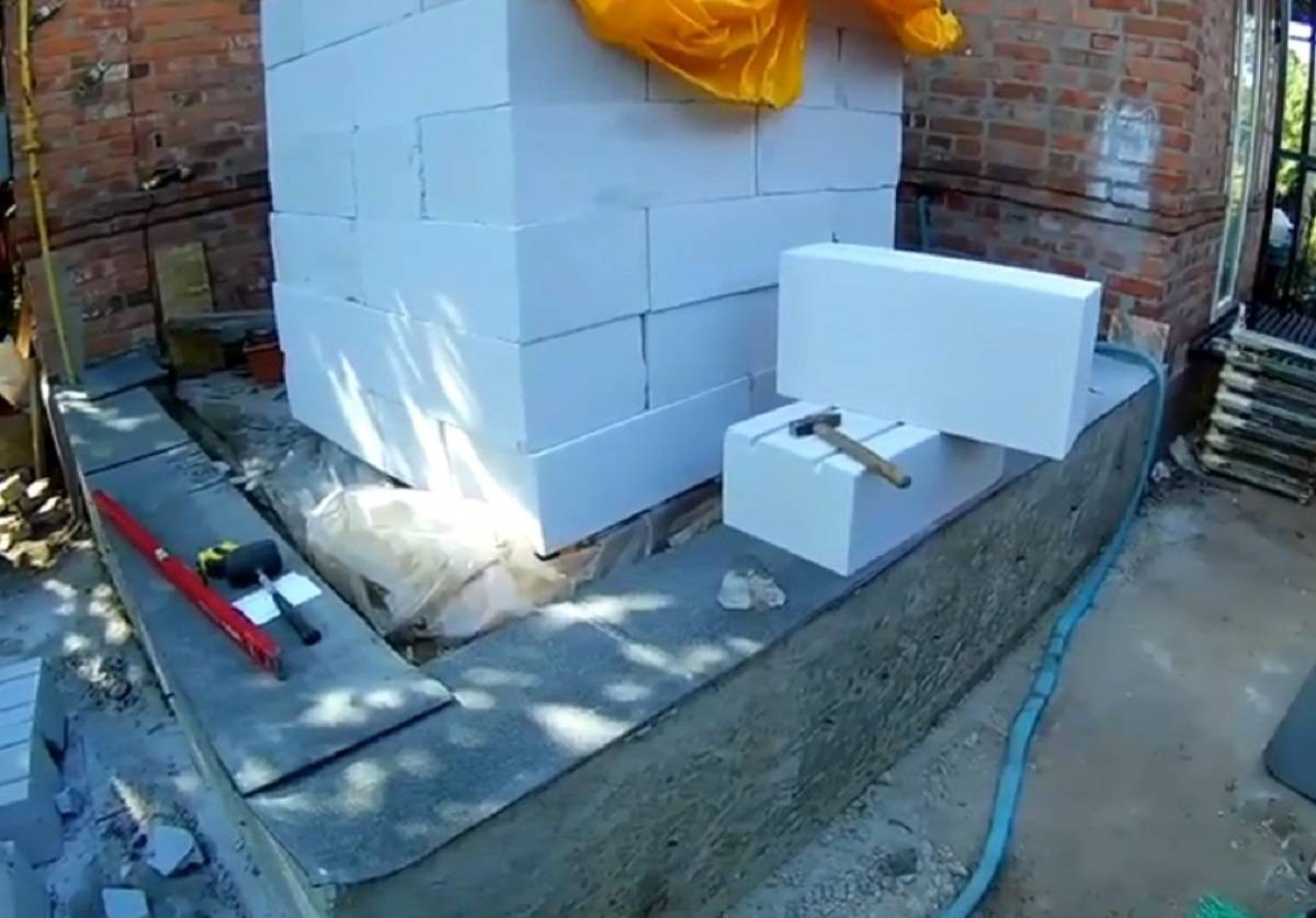На фундамент устанавливается дополнительное строение, которое послужит расширением площади дома. Использовать пеноблоки выгодно по причине их большого размера, низкой стоимости и малого веса. Большой размер блоков ускорит строительство, а малый вес позволит удешевить фундамент и проводить стройку с максимум одним помощником.