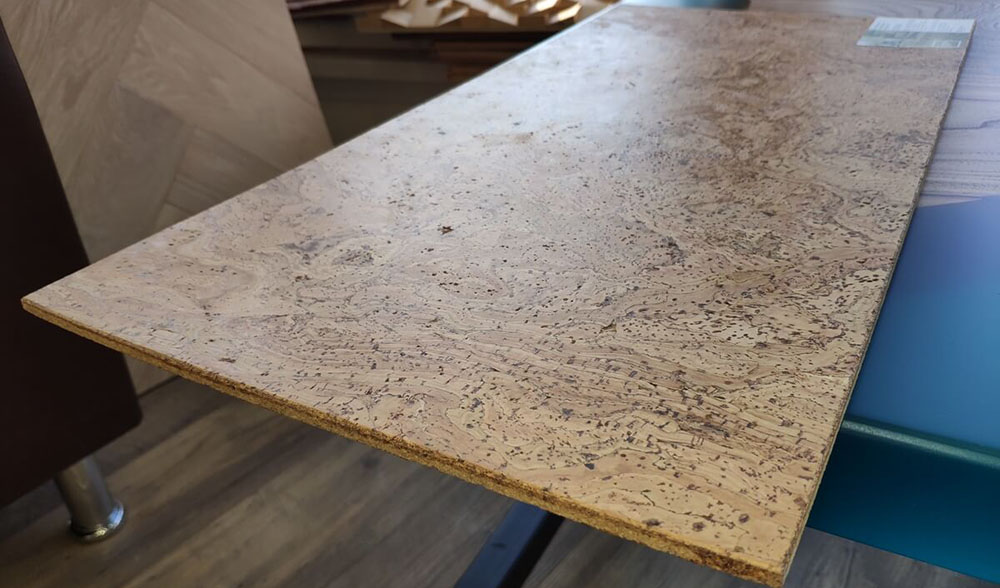 - Пробковая доска (цельный шпон) – самое дорогостоящее покрытие. Лицевая сторона защищается износостойким ПУ-лаком, изнаночная – виниловой пленкой.