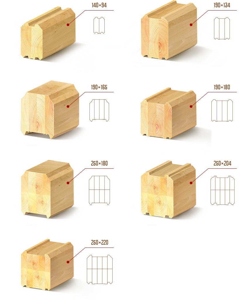 Стандартные размеры и форма клееного бруса в домокомплекте