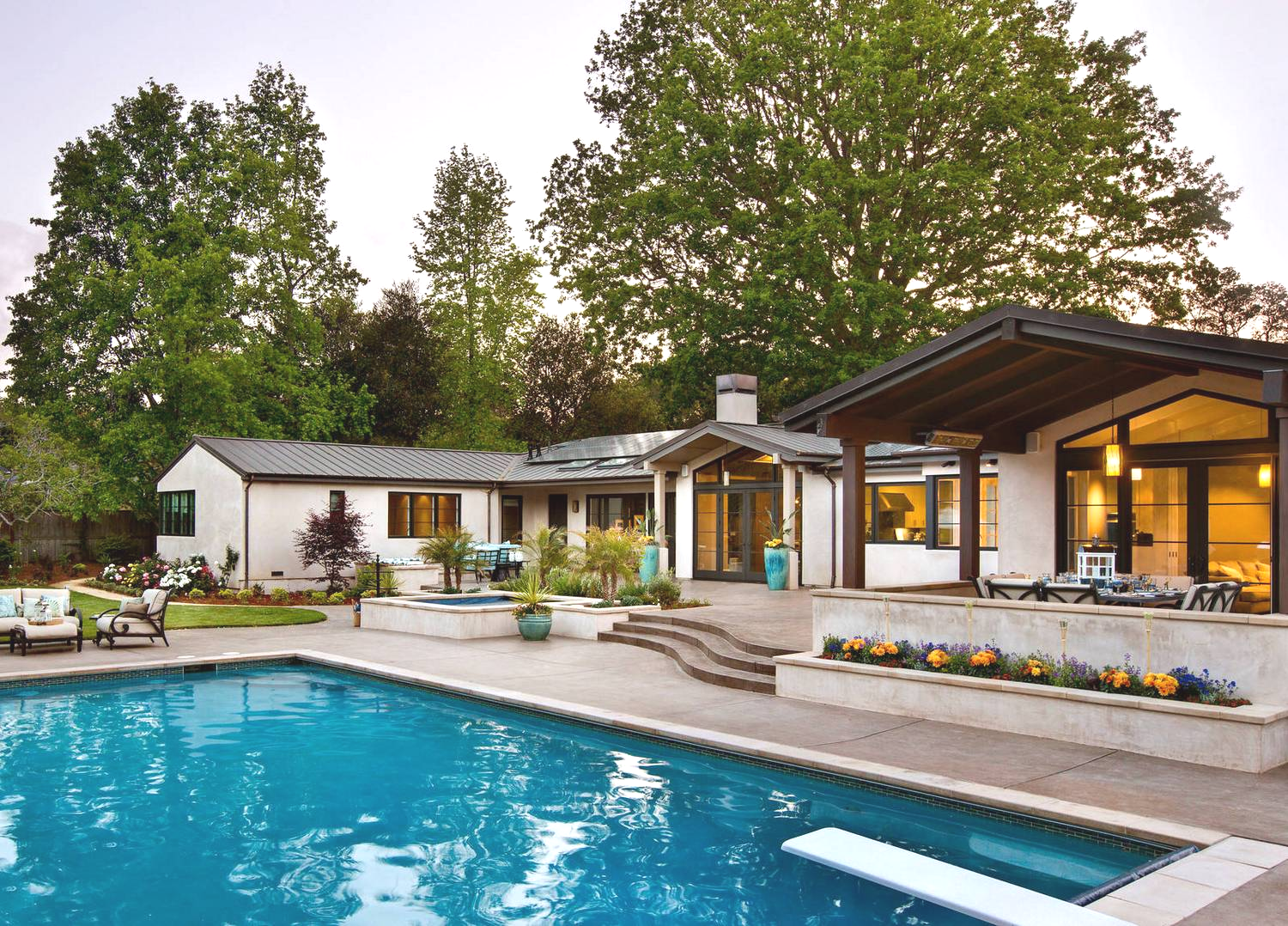 - во внутреннем дворике рекомендуется создать террасу или веранду, которая станет дополнительной зоной отдыха даже в плохую погоду;