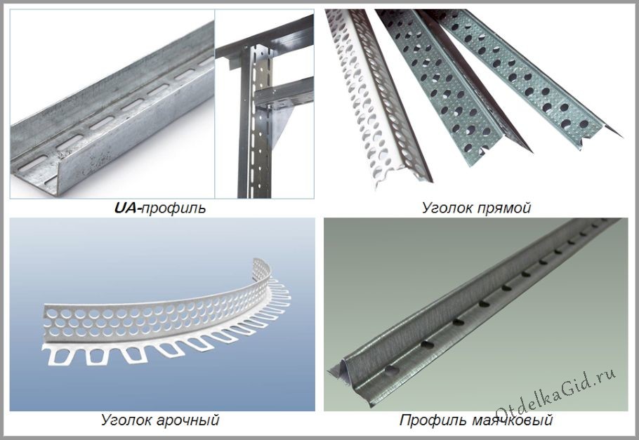 - маячковый профиль. Применяется для выставления по уровню поверхности с целью создания ровной стены.
