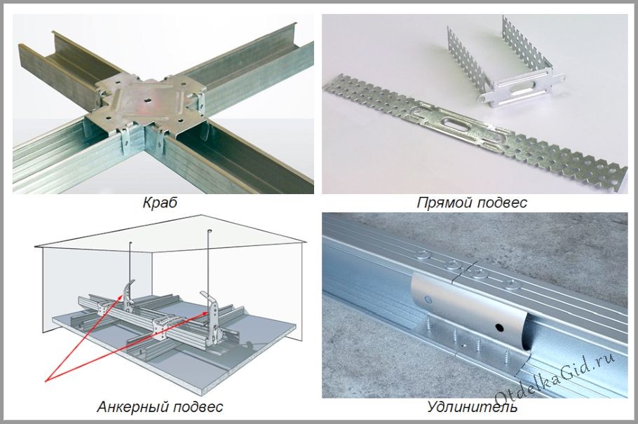 Для фиксации элементов можно использовать специальный крепеж. Позволяет установить потолочную конструкцию любой формы и размера.