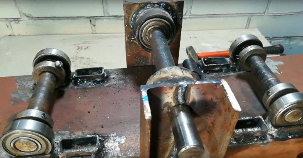Чем больше ведущих роликов, тем меньше вероятность проскальзывания трубы. Если вы собираетесь гнуть профильную трубу больших сечений, то желательно сделать два приводных ролика.
