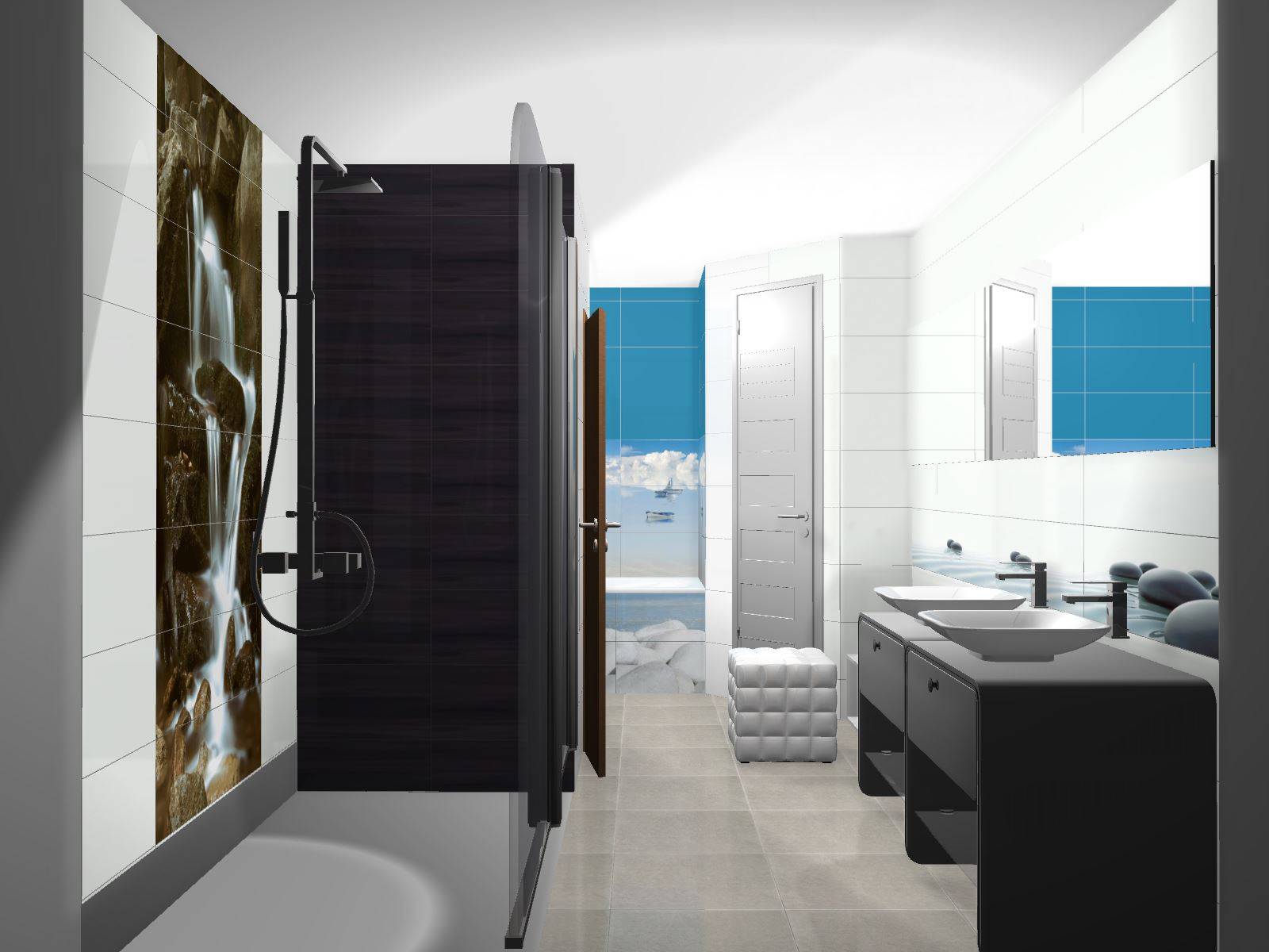 Добавление и размещение в пространстве различных предметов интерьера позволит не только определить правильное сочетание цветов и фактуры плитки, но и даст Вам представление о будущем облике ванной комнаты, а также обеспечит правильный расчет раскладки плитки