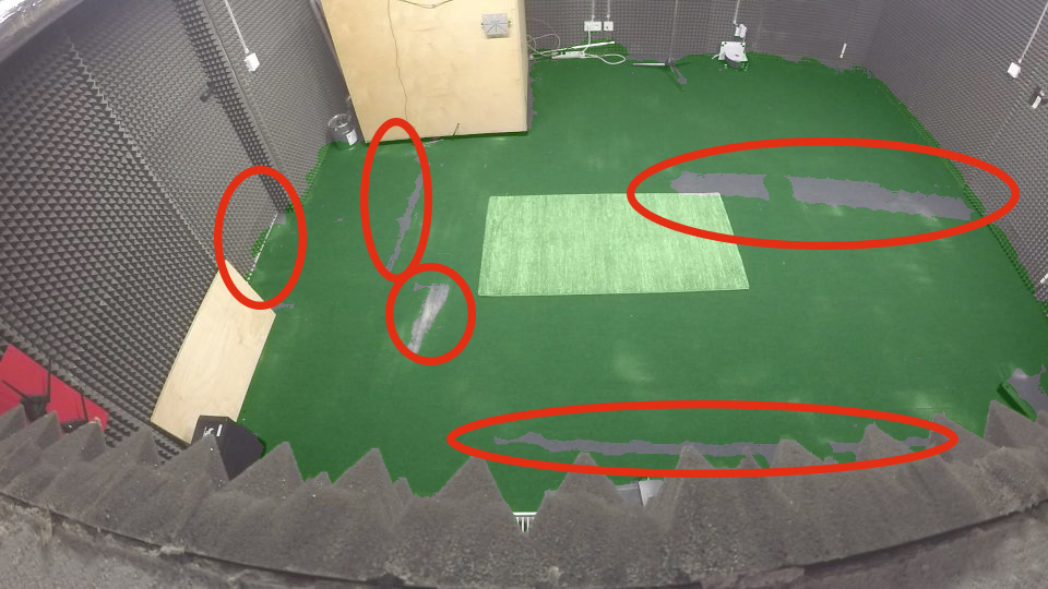 Действительности эти слова соответствуют лишь частично. Хотя настройки навигации у Dyson 360 Eye очень примитивные, он усердно переходит из комнаты в комнату. Тем не менее, часто он натыкается на стену или ограничивающую полоску, а отойти от них не может. Фотографии ниже покажут вам все проблемы навигации, выявленные во время тестирования.