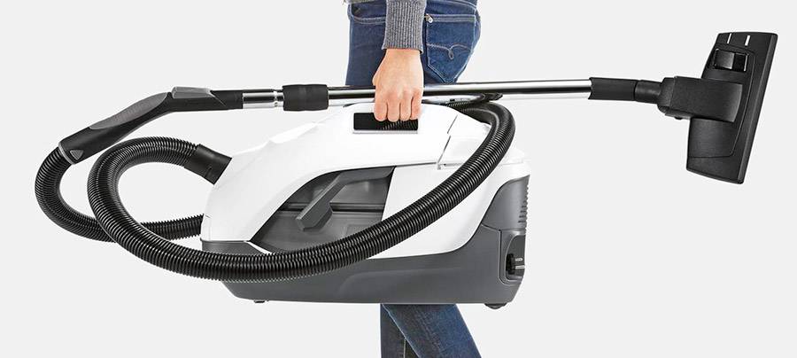 VC 3 Premium (76 дБ; 4,4 кг): сухая чистка, пылесборный резервуар емкостью 1,1 л, циклоническая система фильтрации, 700-ваттная мощность. Трубка всасывания телескопическая, в комплекте поставляются насадка «пол/ковер», щелевая щетка, насадки для мебели и паркета (выделено место под хранение), а также НЕРА-фильтр. Длина кабеля — 7,5 метров, есть функция автоматического сматывания. Корпус оборудован ножным включателем и переносной ручкой.