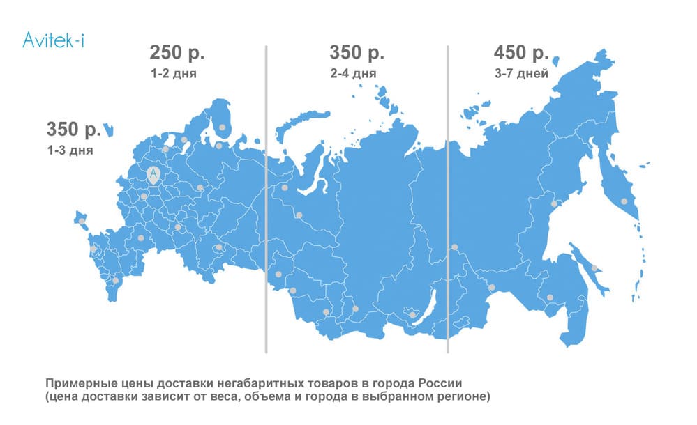 В первую очередь мы нацелены на работу с регионами нашей страны, поэтому организовали доставку в них. Ознакомьтесь с расценками на транспортировку покупок в разные регионы и её сроками.