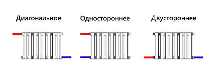 Радиаторы могут быть, как с односторонним, так и двусторонним присоединением труб.