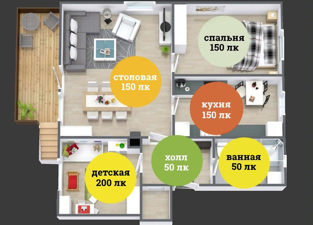 Правильно подсчитать количество светильников и их требуемые технические характеристики позволят существующие рекомендуемые нормы освещенности для каждого типа помещений. В настоящее время хозяева квартир все чаще переходят на светодиодные лампы, поэтому расчет нормы освещения для каждого помещения в квартире будет показан на их примере.