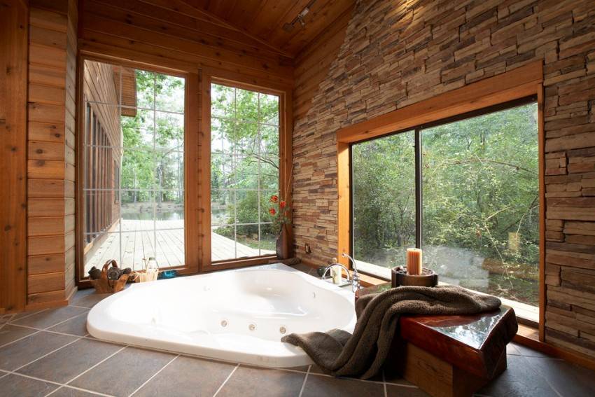 Большая ванна круглой, овальной или полуовальной формы имеет значительный объем, что порадует не только взрослых, но и детей. Такие модели могут заменить полноценный бассейн. Диаметр изделий может быть 1,7-2,2 м. Установка такой крупногабаритной конструкции требует значительного размера свободного пространства. Благодаря плавным линиям и необычным переходам такие ванны легко вписываются в классический и современный дизайн интерьера.