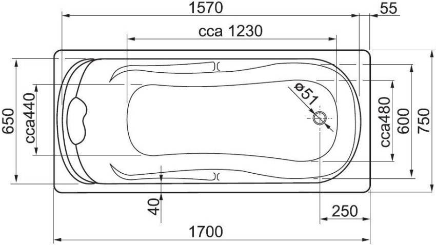Для моделей неметаллических ванн разной формы наружные габариты будут отличаться изначально: