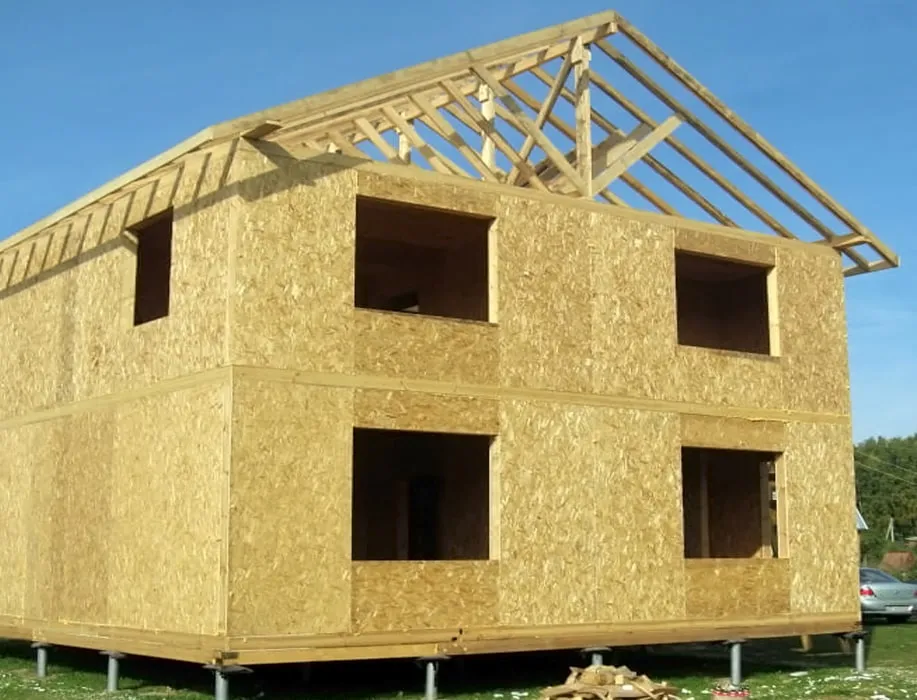 Плиты и панели ОСБ, благодаря своей влагостойкости и доступной цене – лучший выбор для каркасно-щитового строительства, в отличие от фанеры, которая, при наличии такого же набора характеристик, стоит несколько дороже.