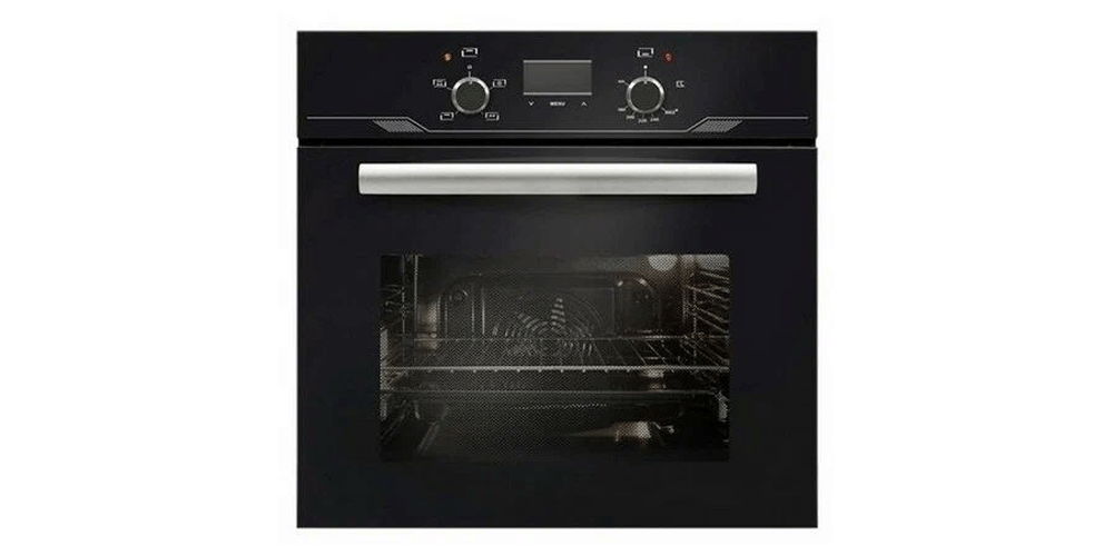 Духовой шкаф с быстрым нагревом, размораживанием, конвекцией, электрическим грилем. Есть подсветка камеры, таймер, охлаждающий вентилятор, сенсорный дисплей, защитная система от детей, электронные часы, защитное отключение, дверца с тремя стеклами, утапливаемые поворотные переключатели. Режимы: большой гриль, конвекция + гриль, конвекция, нижний + верхний нагрев, нижний нагрев. В комплектацию входит противень для выпечки и универсальный противень.