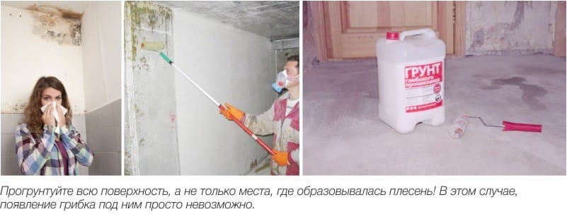 Если под штукатуркой обнаружились пятна плесени, следует обработать потолок специальной антигрибковой грунтовкой или любым хлоросодержащим составом (например, Белизной, если плесень небольшая и не застарелая). Разумеется, все работы также нужно проводить в респираторе.