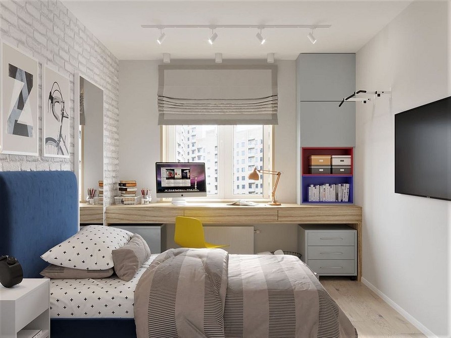 - Для небольшой комнаты подойдет однотонная штора, в цвет стен. Так пространство визуально покажется шире. Предпочтение отдают светлым, мягким тонам.