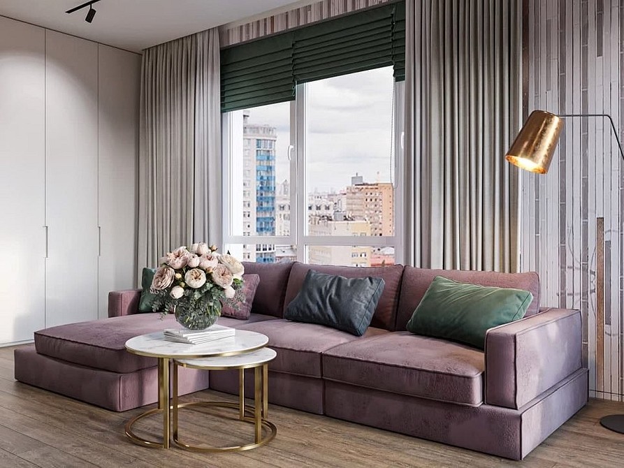 4. Не закрывайте панорамные окна длинными портьерами. Римские — будут смотреться эффектнее.
