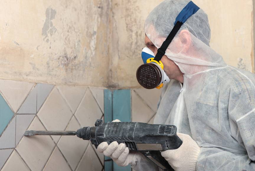 , удалите отделку с поверхности стен: обдерите старые обои, краску или побелку. Если стена была облицована кафельной плиткой, производится ее демонтаж вместе с цементной основой.