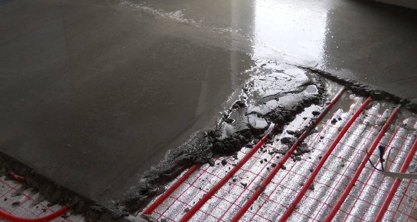 - В конце заливается слой выравнивателя, толщиной не более 3 см.
