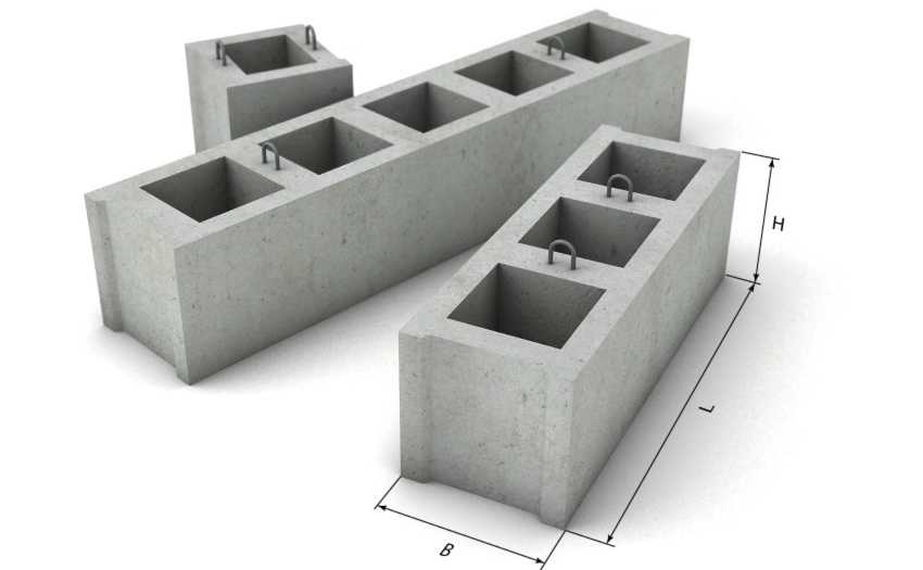 Согласно расшифровке, ФБС представляет собой фундаментный стеновой блок с максимальным запасом прочности. При изготовлении монолитных небольших элементов армирование конструкции не используется. Металл применяется лишь для изготовления петель для монтажа. При производстве габаритных блоков обязательно используются пруты продольного армирования, что увеличивает вес ФБС.