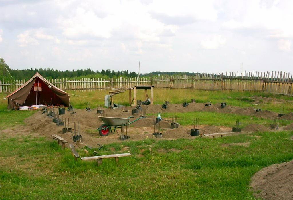 Так называется часть фундаментной основы, объединяющая сваи в единую конструкцию. Чтобы устроить полностью или частично заглубленный ростверок, оголовки свай соединяются траншеей не только по периметру строящегося объекта, но и под несущими внутренними стенками. Дно траншеи утрамбовывается, насыпается подушка из песка и цемента. Подсыпка выполняется примерно по уровню свайного верха.