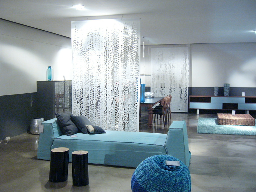 - Серо-синюю комбинацию лучше использовать в зале, окна которого выходят на южную сторону или в помещении с ярким естественным освещением.