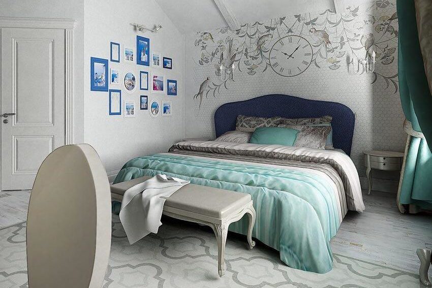 Чаще всего дизайнеры для оформления спальни используют бирюзовый цвет, небесно-голубой и аквамарин.