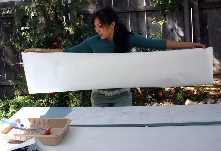 . Оставляем дерево высыхать, а сами займемся подготовкой ткани. Нам потребуются сделать замеры, они будут следующими – шесть кусков ткани размером 152х50 сантиметров, и 12 кусков ткани размером 30х25 сантиметров.