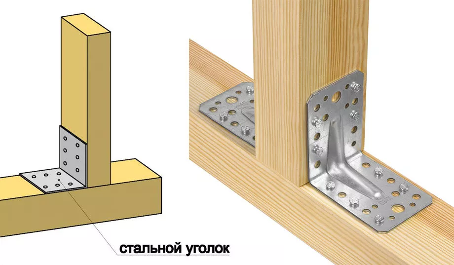 | 4 | Горизонтальные брусы соединить с вертикальными стояками уголками из металла с помощью саморезов. Уголки лучше устанавливать снизу бруса, чтобы их не было видно. |