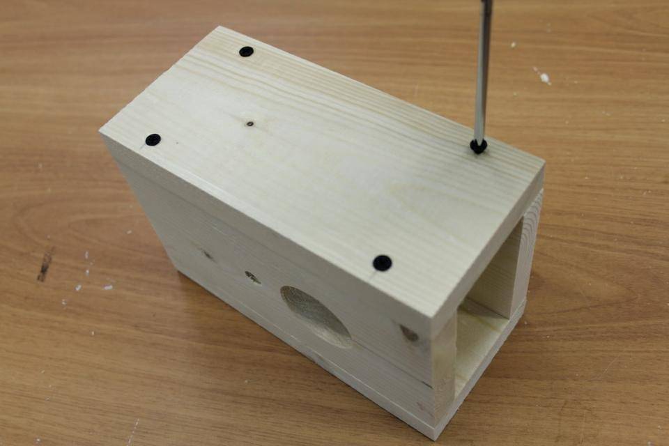 По аналогичному принципу прикручиваем дно птичьего домика.