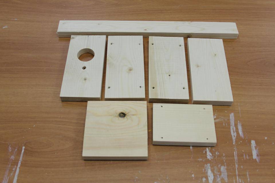 Схема изготовления скворечника из дерева с размерами для маленьких птиц такова: