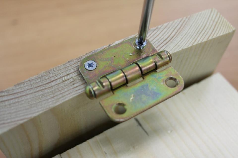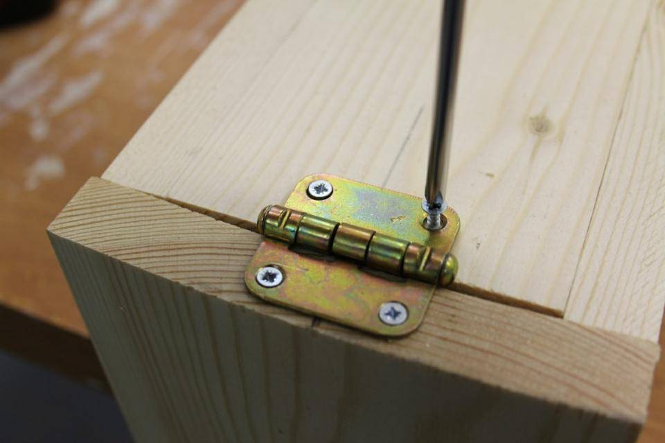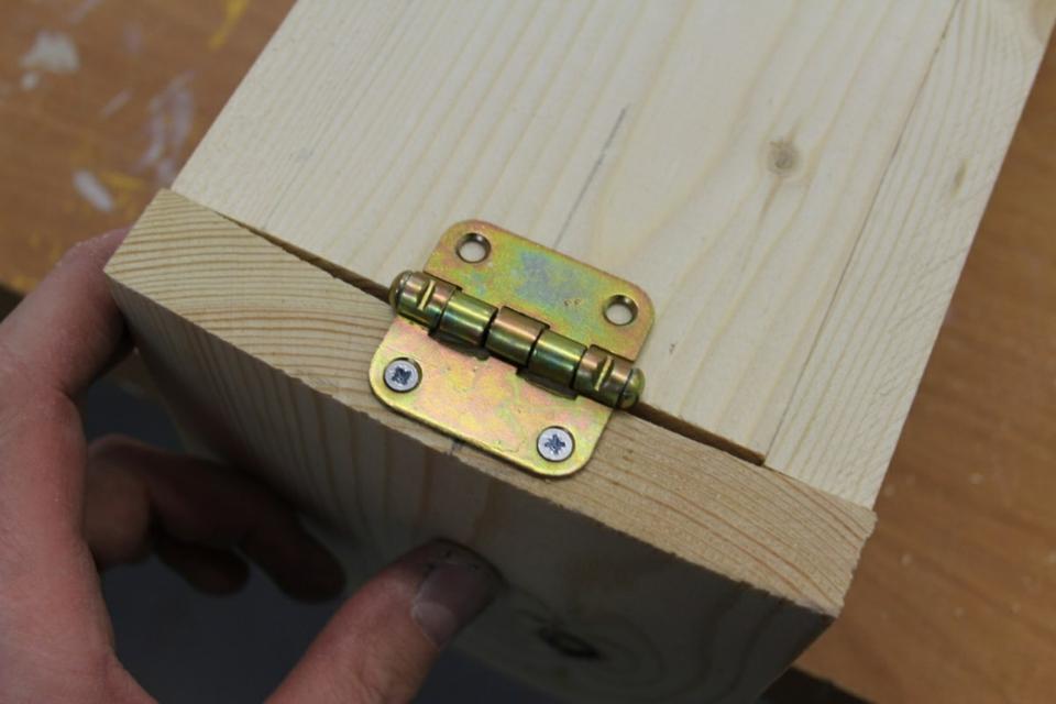 Прикручиваем с помощью крестовой отвёртки петлю к тыльной стороне скворечника.