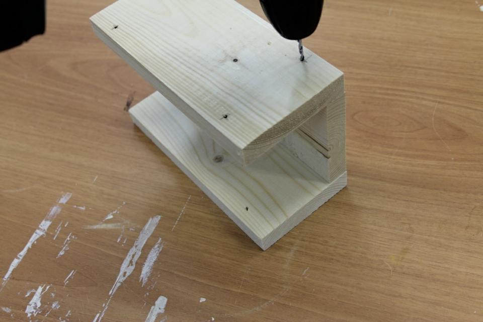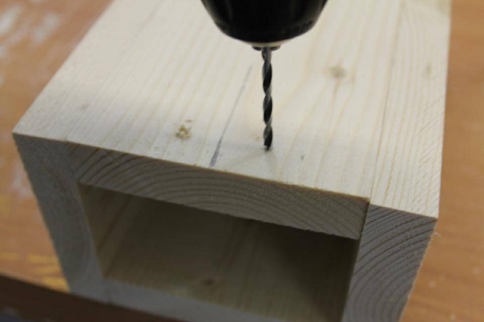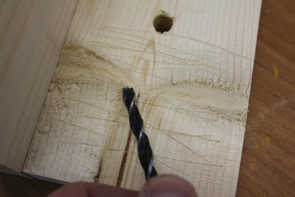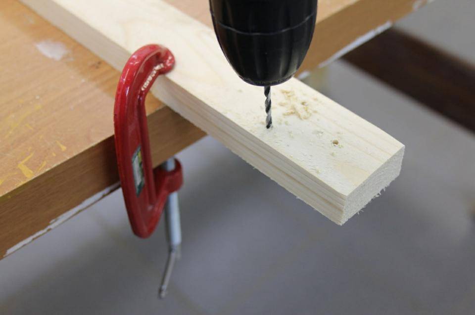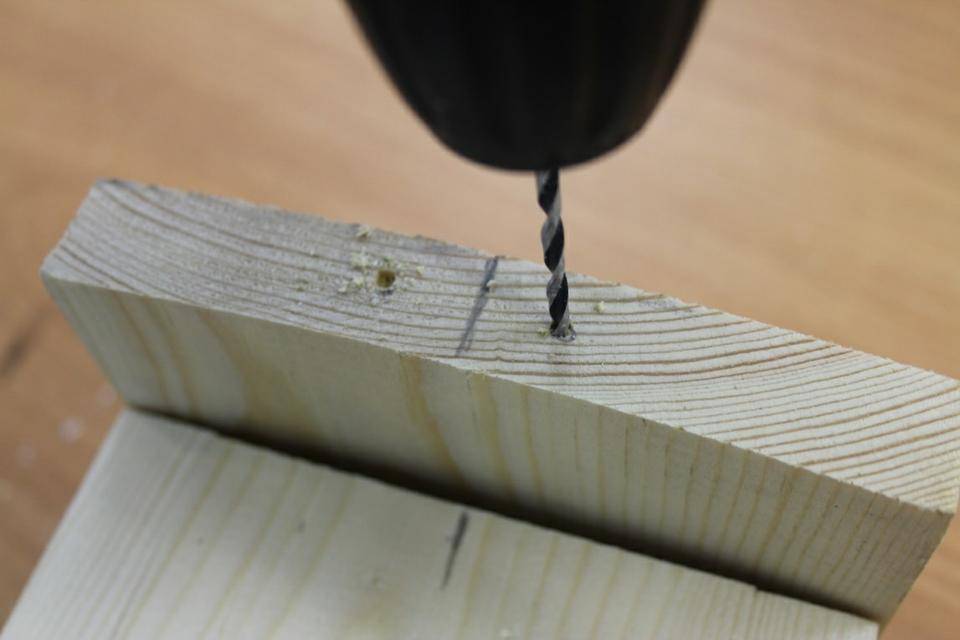 Заранее просверлите отверстия в дереве для саморезов, которые обеспечат надежное крепление всех элементов