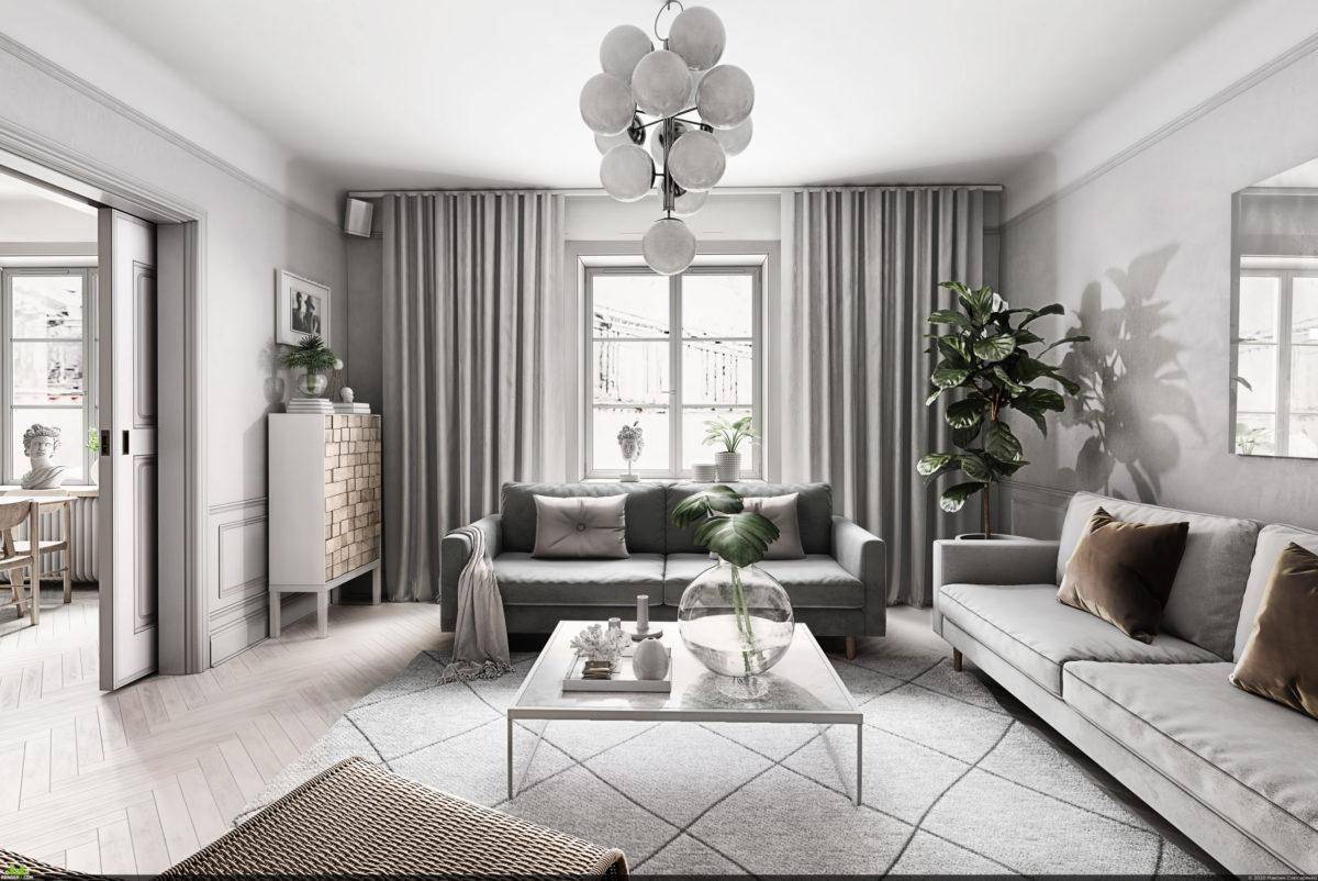Чтобы серый зал не смотрелся слишком строгим или тусклым, в интерьере должны присутствовать предметы декора. Их подбирают в соответствии со вкусами жильцов и стилистикой помещения.