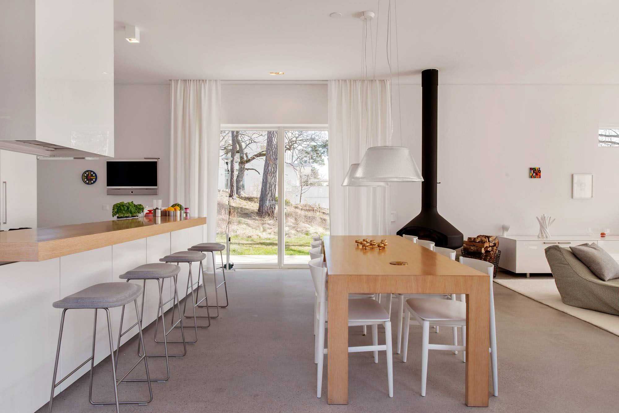 Современному стилю соответствуют разновидности с прямыми линиями, натуральной фактурой, естественным цветом. Занавесь должна быть практичной, функциональной, гармонично вписываться в окружающее пространство.