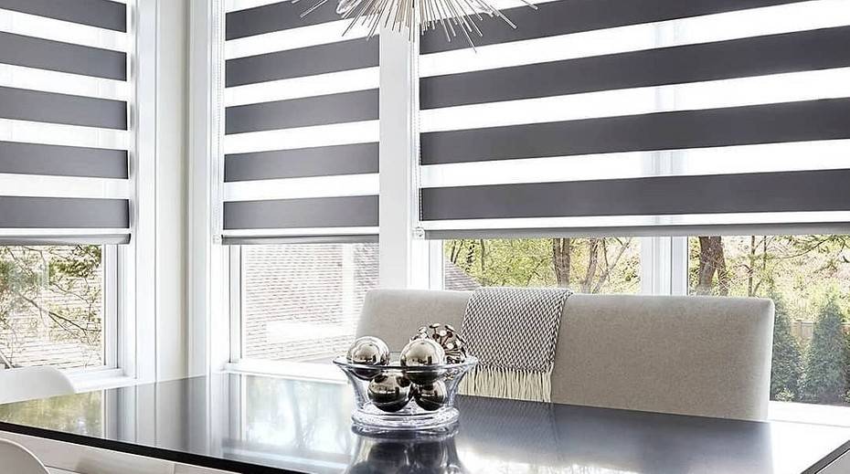 Такое оформление кухни помогает регулировать освещение и беспрепятственно открывать любую часть окна по отдельности.