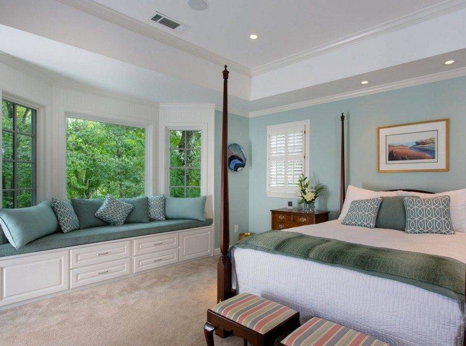 Просыпаясь утром, вы должны видеть что-то приятное глазу — неважно, будет ли это красивый вид из окна или картина в раме. Днем через окна в спальню должно попадать достаточное количество света и воздуха