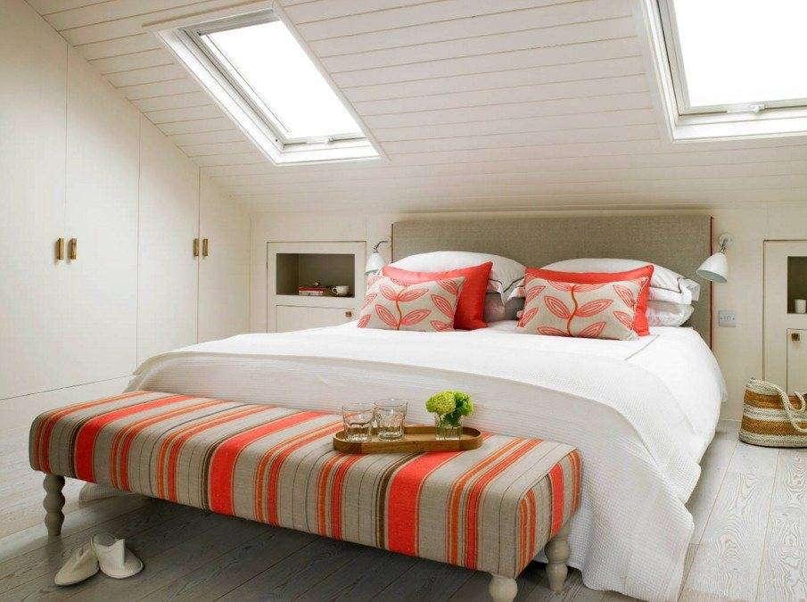 - Под скосом потолка, что нередко встречается, когда спальню устраивают в мансарде.