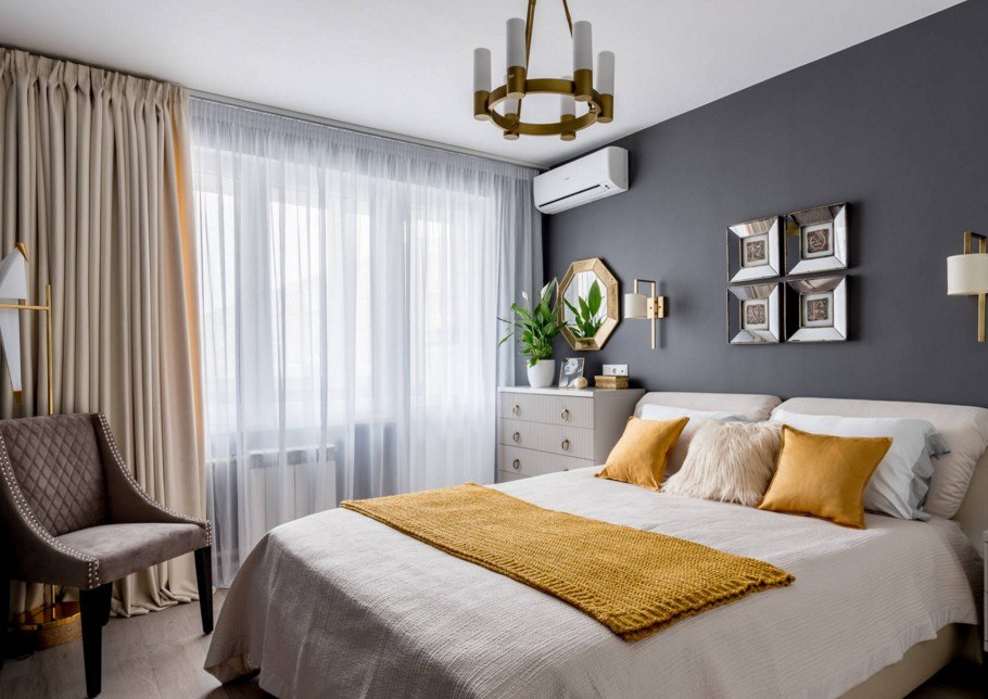 Днем через окна в спальню должно попадать достаточное количество света и воздуха. Однако прямой солнечный свет не должен падать на кровать.