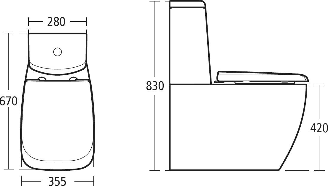 Унитаз без полочки с навесным или отдельным бачком имеет следующие размеры: