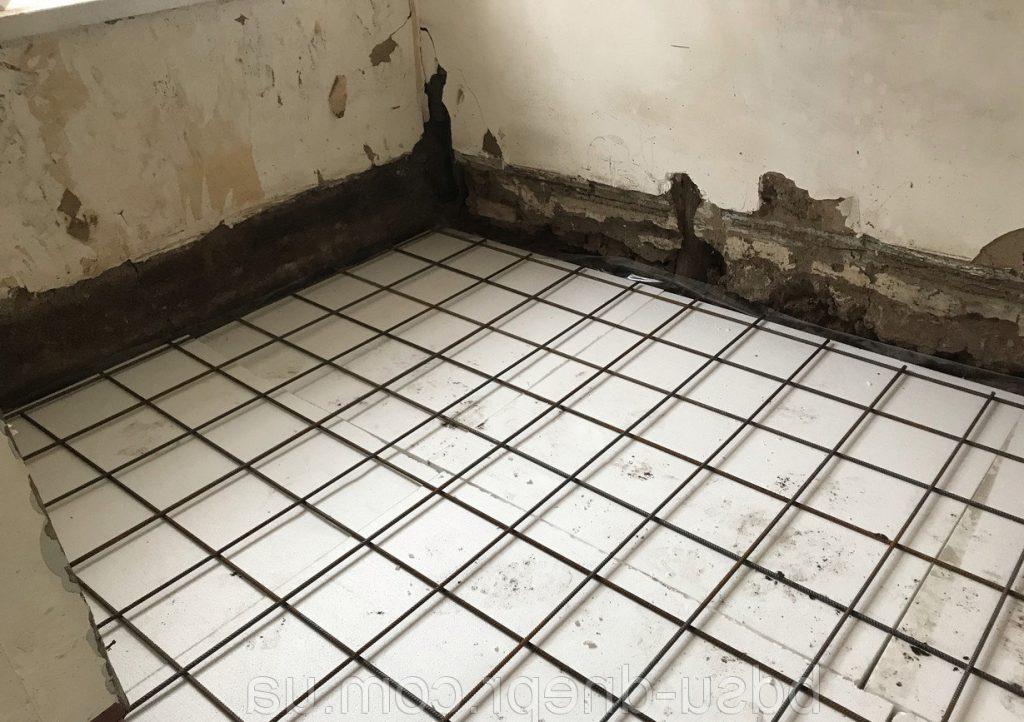 - Армирование. Этот вид работ проводится при помощи арматуры или стальной сетки. Основное предназначение армирующего слоя – усиление прочности стяжки. Чтобы её не утяжелять, можно просто добавить в раствор немного фибрина;
