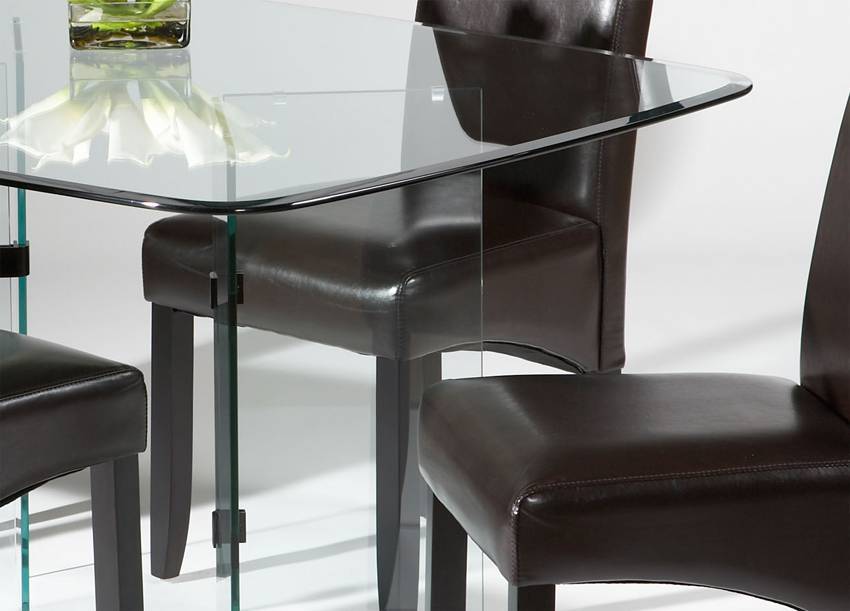 При покупке прямоугольного или квадратного стеклянного стола для кухни следует обращать внимание на то, чтобы углы были скруглены