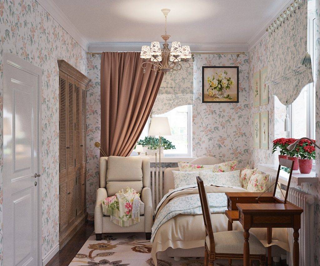 Возможен вариант, когда спальня включает рабочую зону. Зонирование осуществляется с помощью перегородки и различных интерьерных хитростей. Оформление подчиняется основным принципам прованса: натуральное дерево, сдержанные формы, светлая цветовая гамма.