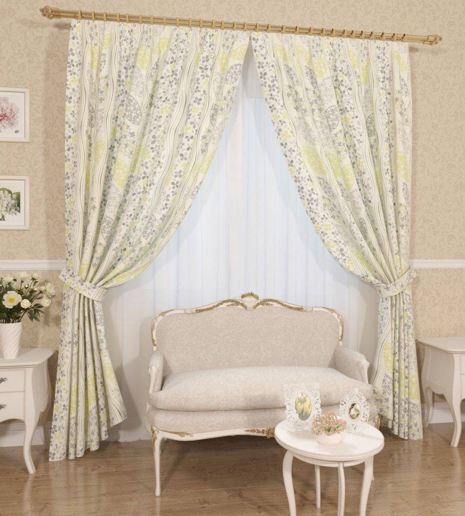 - большие окна со шторами из натуральных тканей. Отдайте предпочтение однотонным материалам, но наличие цветочного или геометрического принта не станет лишним;